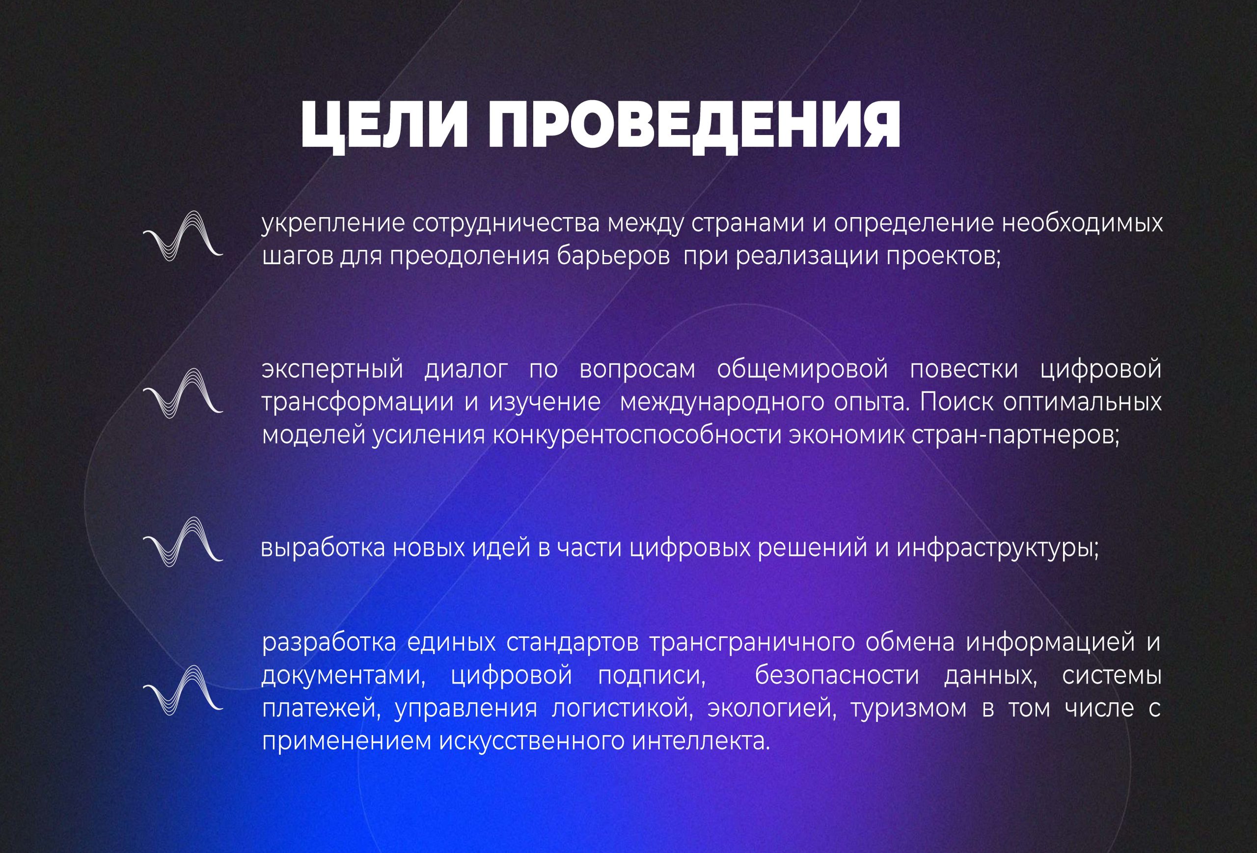 Главная цель мероприятия — создание эффективной системы взаимодействия между государственными структурами, предприятиями и организациями реального сектора экономики и социальной сферы. В рамках форума участники обсудят пути устранения барьеров при реализации совместных цифровых проектов, разработку единых стандартов трансграничного обмена информацией и документами, обеспечение безопасности данных и развитие цифровых экосистем.