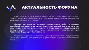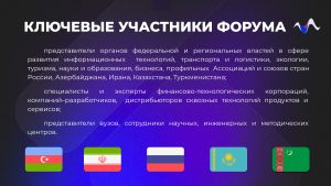 Особое внимание в этом году будет уделено теме международного транспортного коридора «Север – Юг». Эта сквозная тема отражает стратегическое значение укрепления торгово-экономических связей между странами региона и важность межрегионального цифрового взаимодействия.